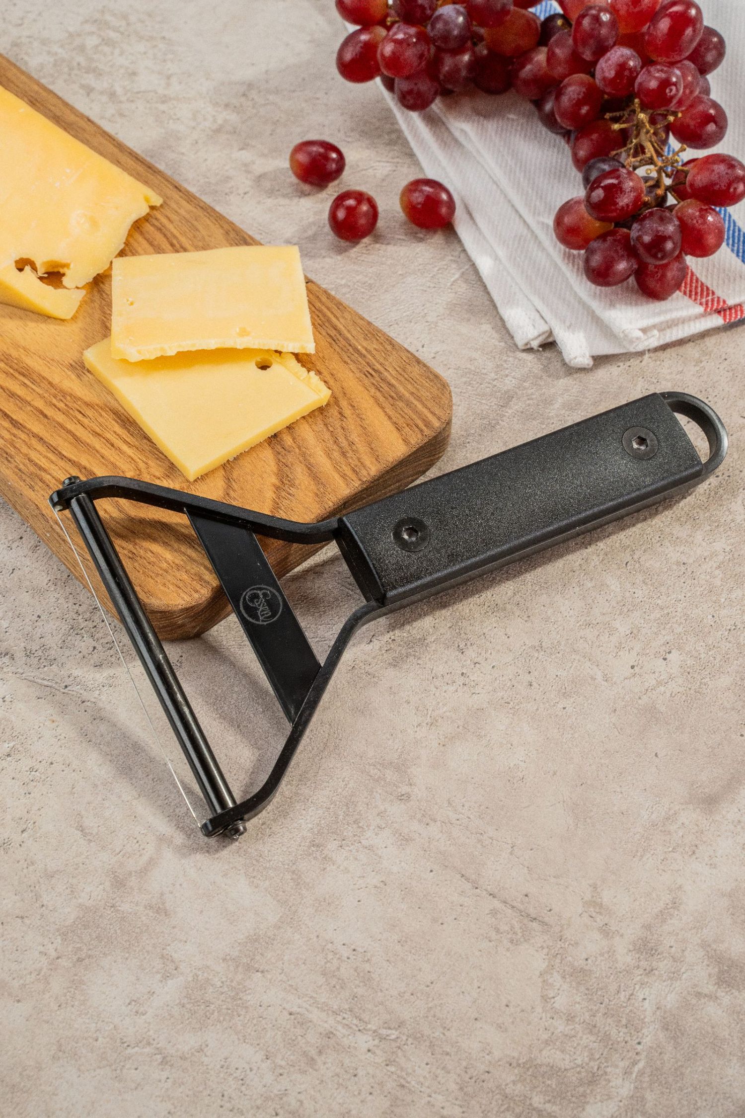 Preciso, resistente y versátil. Permite cortar quesos blandos, semiduros, manteca y dulces de forma pareja y sin esfuerzo.